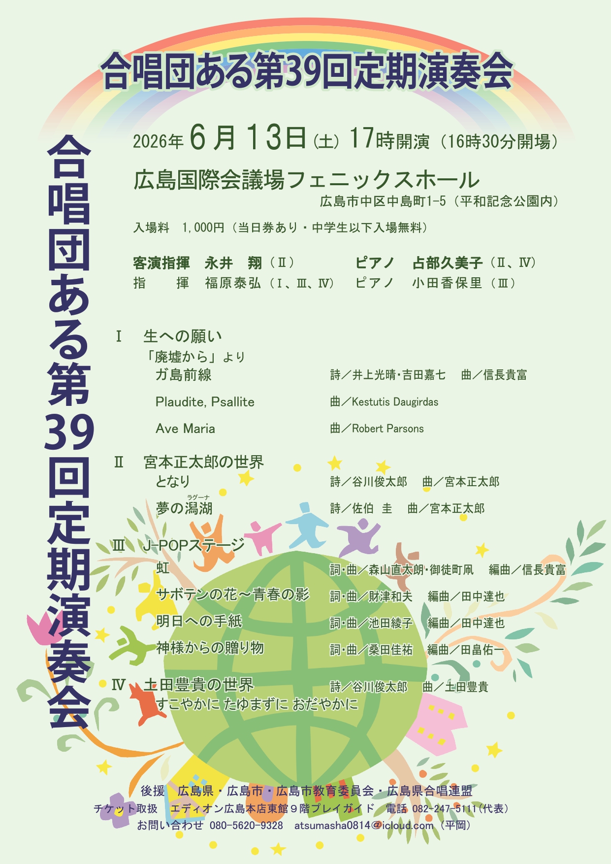 私たちの定期演奏会も今年(2025年)で38回目を迎えました。「ここ広島で存在感の”ある”合唱団になりたい」と言う夢を掲げ、今日までたくさんのひとりひとりが熱く唱い、たくさんの方々に温かく聴いていただく中で、合唱団あるの音楽は育まれてきました。